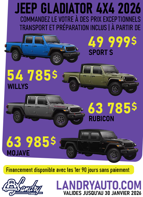 Oui, envoyez-moi des offres et des promotions exclusives de la part de Landry Automobiles Dodge Chrysler Jeep Ram et de ses partenaires. Je peux retirer mon consentement à tout moment.